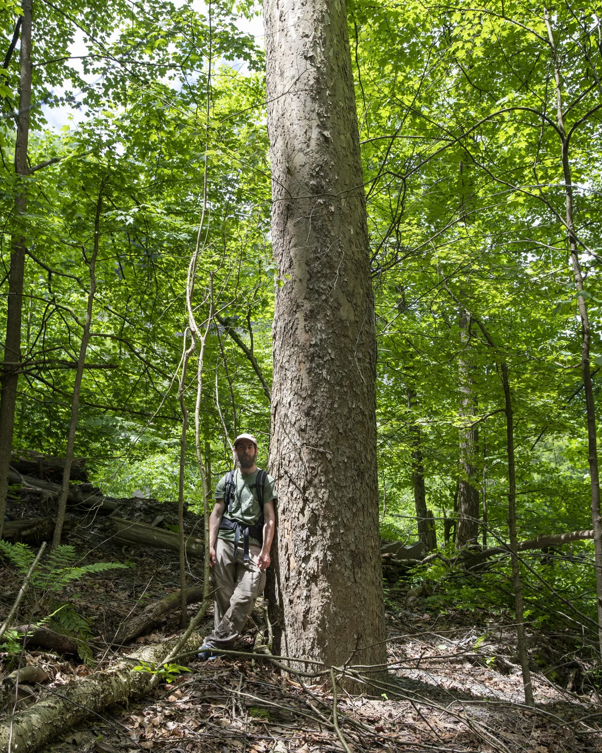 Within these younger forests a Tuliptree rises 163.5' to pierce the surrounding canopy of Maples and Basswoods, making it the tallest broadleaf tree in all of North America north of the 40th parallel. This fast-growing individual stands on a trunk with a DBH of just 32 inches. A few steps from its base is a hollow structure built of stacked stones- a lime kiln. Less than two centuries ago, the original forests that shaded that stretch of canyon were cut and fed into that kiln to be cooked down into ash.